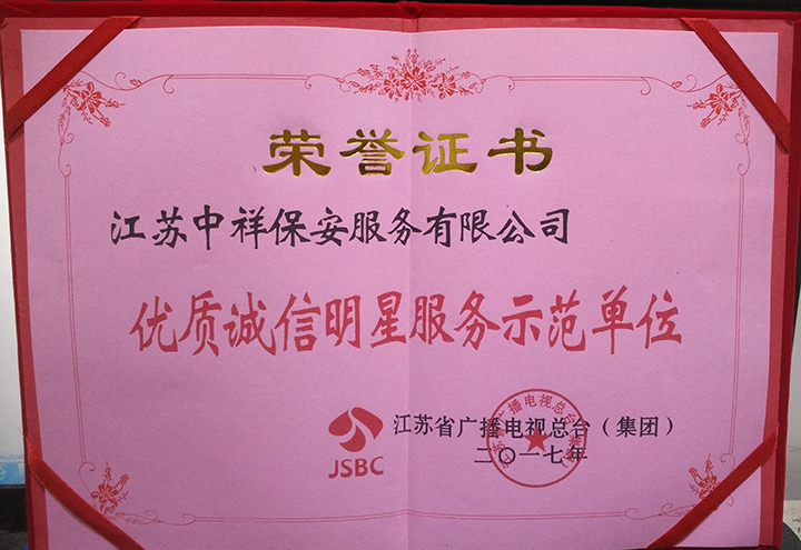 江蘇中祥保安服務(wù)有限公司是經(jīng)江蘇省公安局廳,市公安局批準(zhǔn)的具有合法資質(zhì)的保安服務(wù)公司,屬上海智成旗下子公司,我司從2003年以來至今已有十幾年的管理經(jīng)驗(yàn),多年來一直專業(yè)從事企業(yè)安全外包、大型活動(dòng)現(xiàn)場(chǎng)保衛(wèi)、長(zhǎng)短期保鏢、緊急危機(jī)處理、技術(shù)防范等全面安全事務(wù)管理服務(wù),保潔服務(wù),物業(yè)管理服務(wù),取得了驕人的業(yè)績(jī),并受到客戶的高度贊揚(yáng)。
